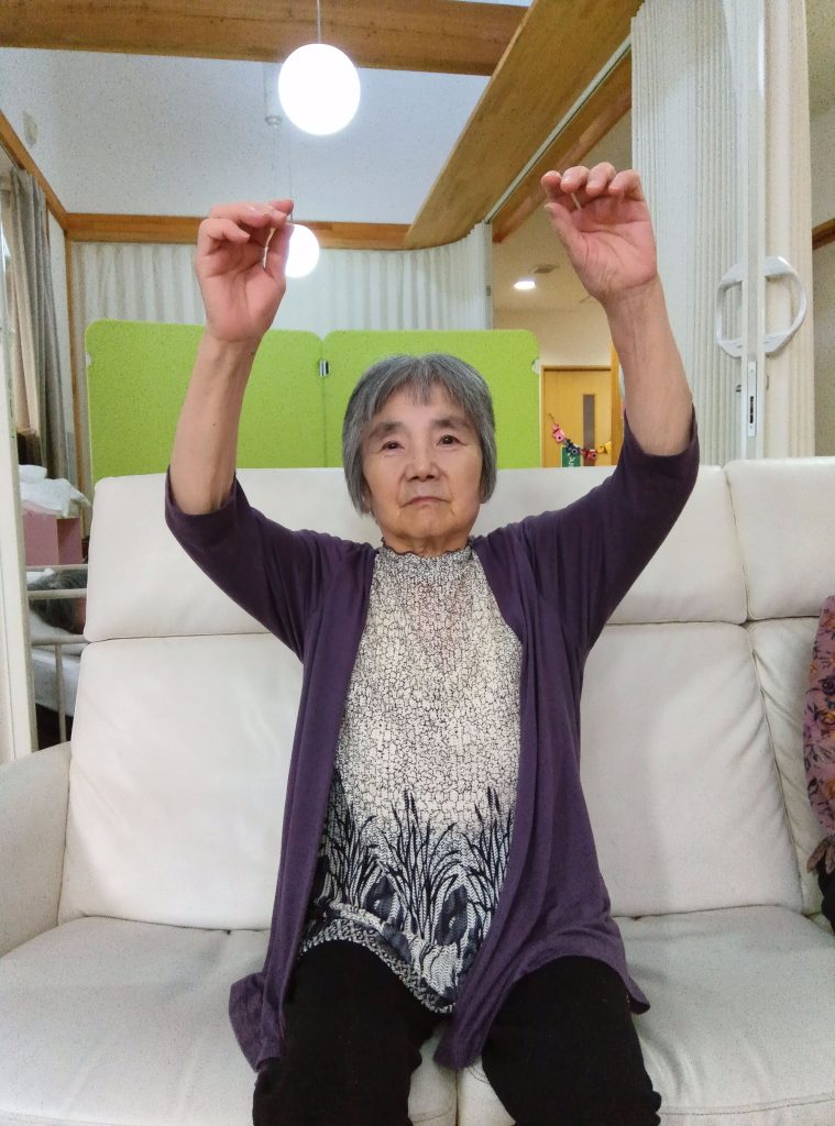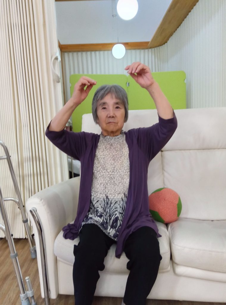 数か月前の職員会議で、ある利用者さまが「今までできていた、シャワーが自分でできなくなっている」と話があり、足の運動に加え、肩と肩甲骨のマッサージ・運動を開始することになりました。