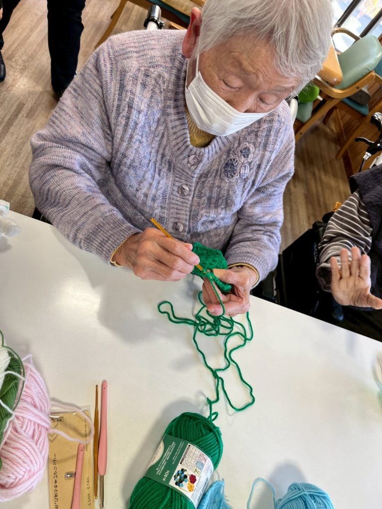 あっちでもこっちでもご利用者様に編み物をする方が!